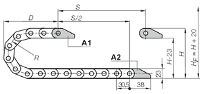 Aquí puede configurar su sistema de cadenas portacables. Todos los datos introducidos y todas las modificaciones se transfieren a la lista de piezas que se encuentra al final de la página.