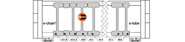 Aquí puede configurar su sistema de cadenas portacables. Todos los datos introducidos y todas las modificaciones se transfieren a la lista de piezas que se encuentra al final de la página.