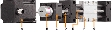 C = Brida del motor: conexión para motores paso a paso