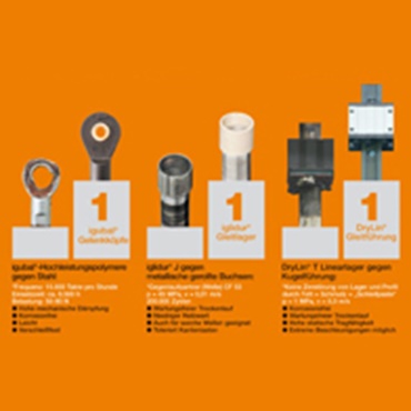 igus® desarrolla plásticos especiales (tribopolímeros) que están optimizados para diversas aplicaciones con respecto al desgaste y por lo tanto la vida útil.